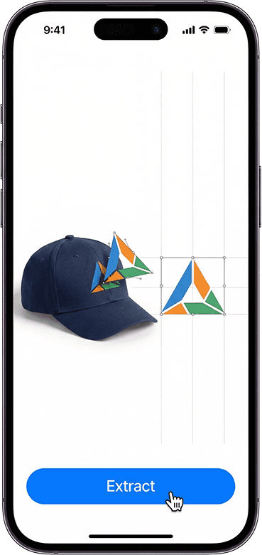 Upload a photo of any decorated product or apparel. Our AI extracts the design, removes wrinkles and backgrounds, corrects perspective, and generates clean, scalable vector paths.